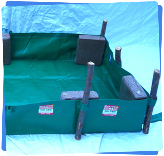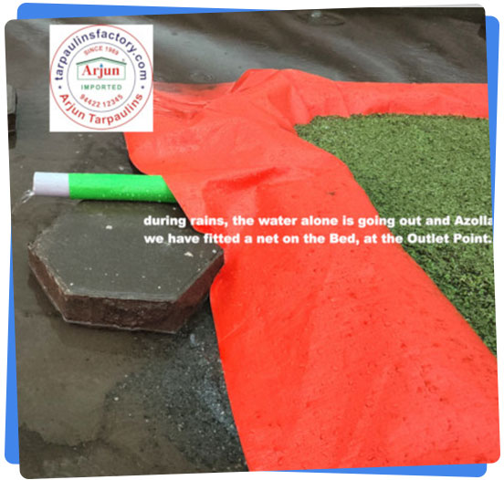 Shade Net : Prefer the suitable size of shade net (50%) as given in the chart and just spread on the Azolla Bed, and put 4 Bricks on the four corners.